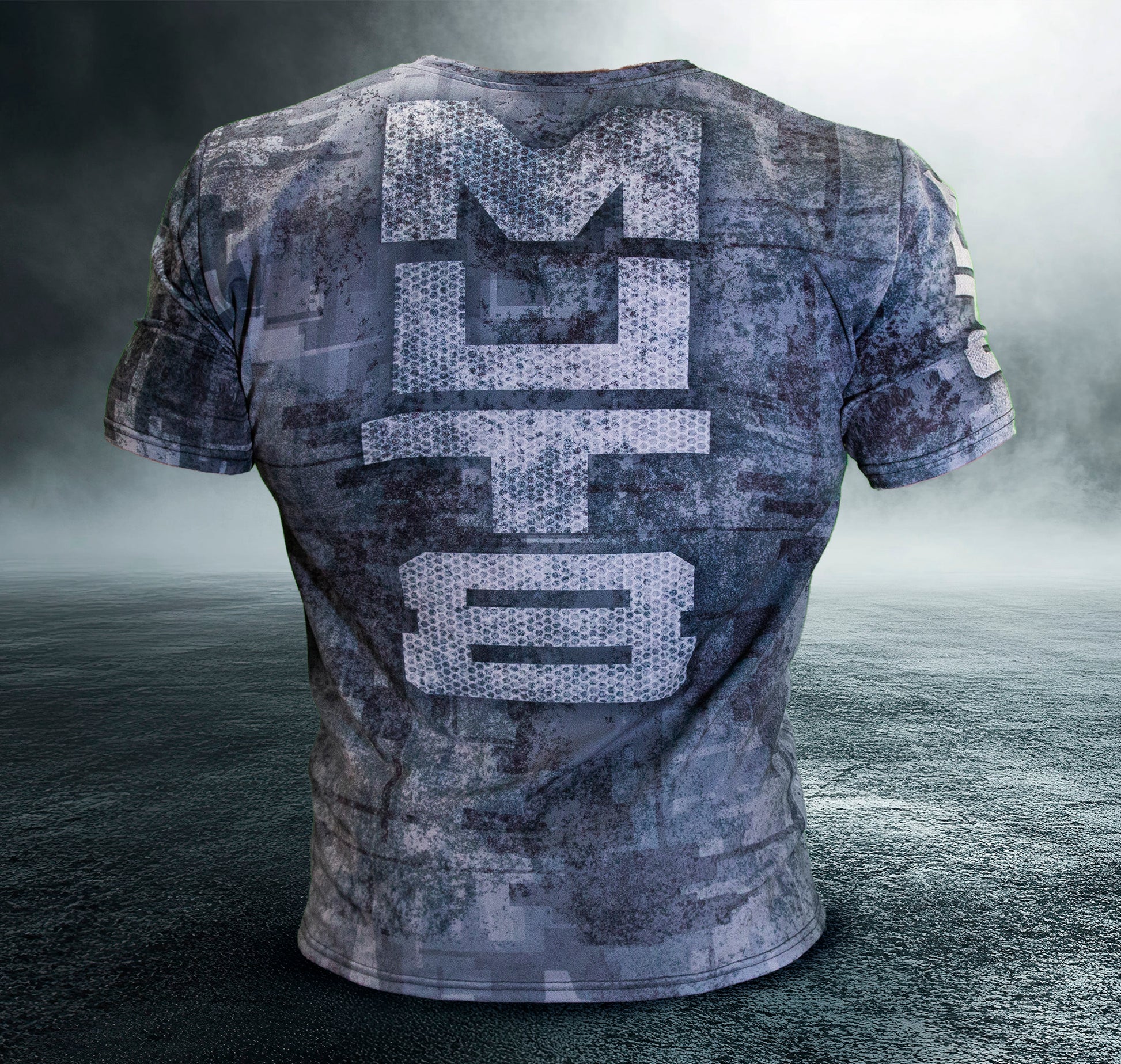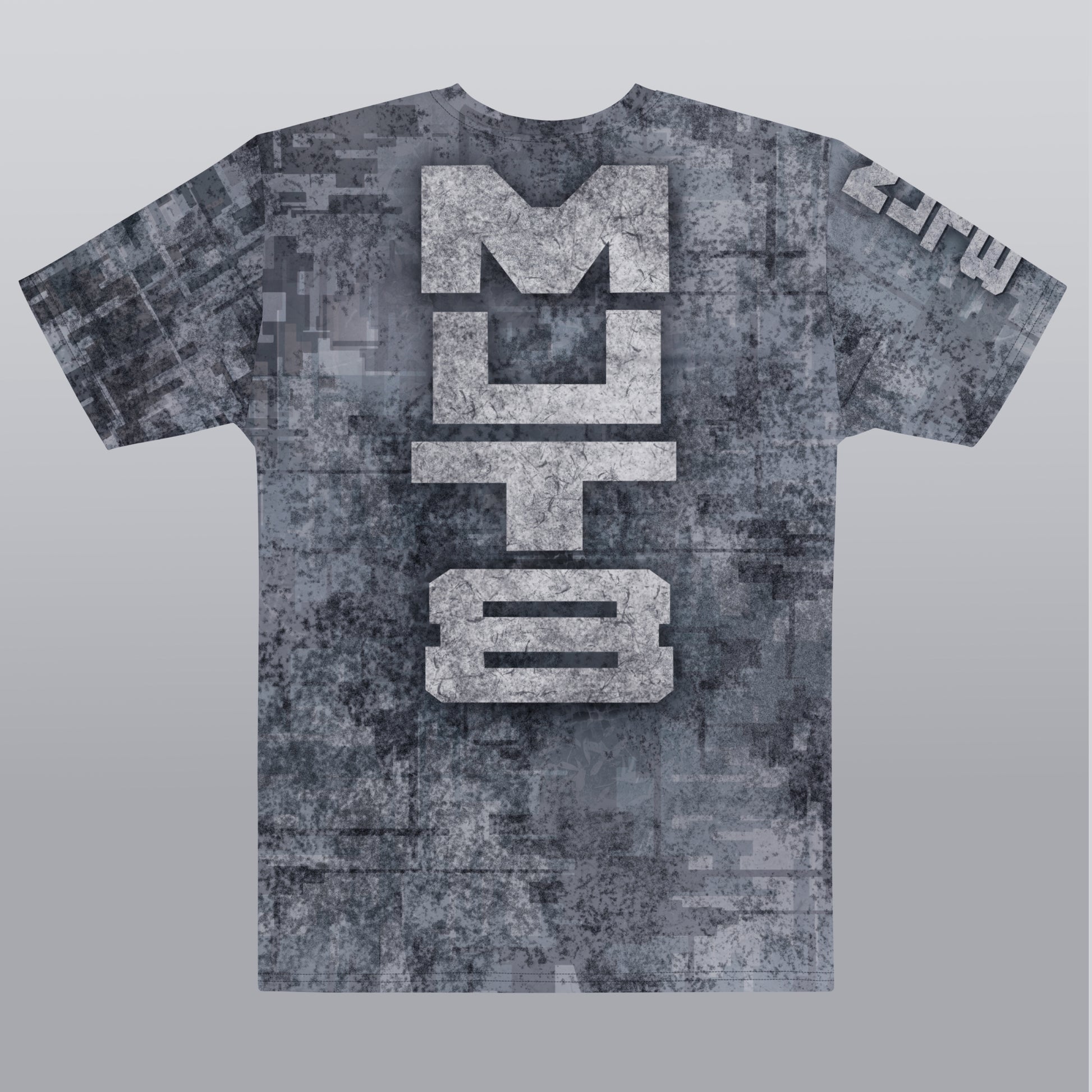 his Gym T shirt is 95% polyester, 5% elastane. designed with a 'MUT8' blueprint and available in men's sizes from Extra Small to 2Xlarge. The shirt is available in a stylish red grey color. Get the perfect fit for your physique. Crafted with meticulous attention to detail, this T-shirt is tailored to perfection, ensuring a comfortable and flattering fit. The high-quality print covers the entire garment, showcasing the intricate nuances of the design and making it a true standout piece.
