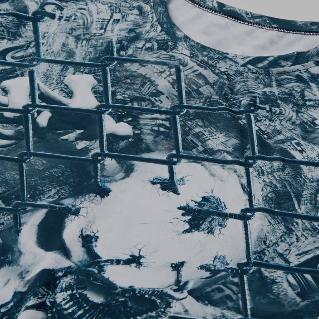 This MMA-T shirt is 95% polyester, designed with a "Cage Effect" blueprint and available in men's sizes from Extra Small to 2Xlarge. The shirt is available in a stylish Blue Green colour. Get the perfect fit for your physique. Crafted with meticulous attention to detail, this T-shirt is tailored to perfection, ensuring a comfortable and flattering fit. The high-quality print covers the entire garment, showcasing the intricate nuances of the design and making it a true standout piece.